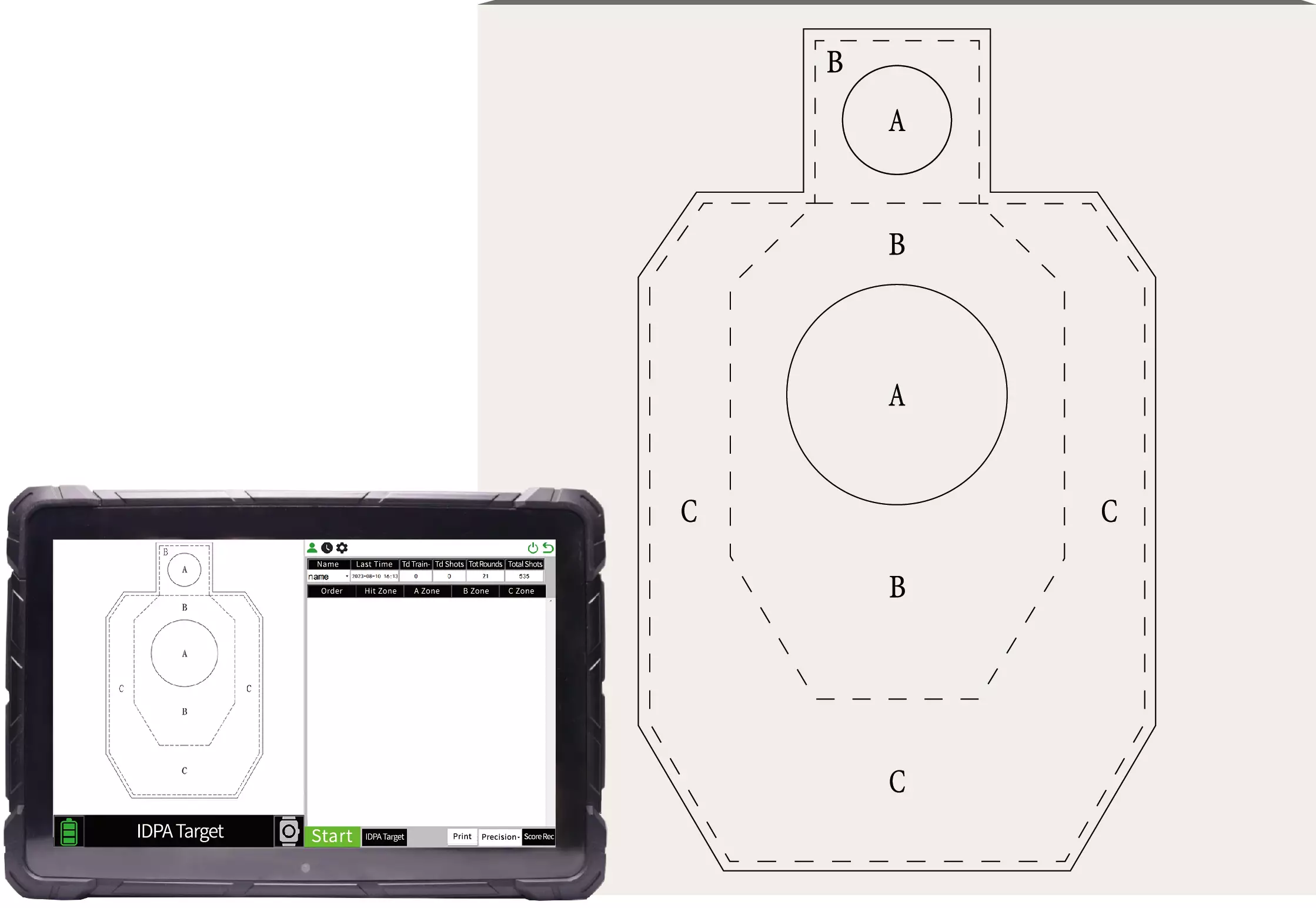 Fotoelektroninen 500x500x18 mm lisätaulu jalustalla ZTL-11 tarkkuusammunta järjestelmään 14" tabletilla ampumadatan analyysiohjelmistolla. Toimii 10-200 m matkoilla. Ei toimi tavallisilla L17Pro tai L17S pistooleilla.